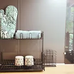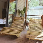 Den Blick den Garten können Gäste fast von überall genießen. Es gibt auch ein privates Badezimmer mit einer Dusche.